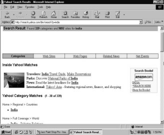 Now let us go on a tour to discover India. Who knows like Christopher Columbus you too may land up in America instead? Actually this is really possible with a net search. Most of the times you rarely find what you are searching for. With a million new sites coming up each day, the search engines are definitely overworked. They give you more than what you ask for. Each search engine has its own search results. No two engines will give you the same links. The search in Yahoo! for India gives us 339 category matches. Quickly browse through these matches and you will realize that another search engine comes up with an entirely different set of links on our country.