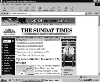 This is the reason why the Internet is called the World Wide Web. You can use one site to move on to another. The Times of India site gives you the daily news, the murders, the scams, the election results, the sensex fall et al. The complete ball of news is on your screen. You can read the entire newspaper on the net itself!