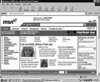 browser takes you to is the Microsoft System Network (MSN) site at www.msn.com.