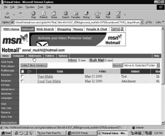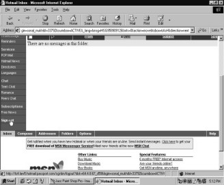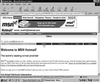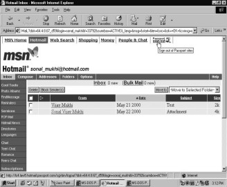 To visit the Hotmail site, once again type in the site address in the address bar. Follow the same procedure as before to log on to your account.