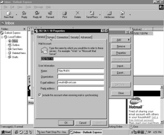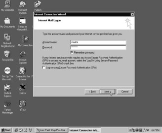 In the following box enter your email account name and password. This is again given to you by your ISP. Your password will be displayed as a row of asterisk on the computer screen. The password is a security that prevents others from reading your mails. Make sure you don’t disclose it to nobody. Not for a bar of chocolate, not for free tickets to 'American Beauty', not even for a trip to the moon. The provision for entering your password is optional.Similarly, if you tick the `Remember password` option, you will not be asked to supply your password the next time you wish to access your mails.