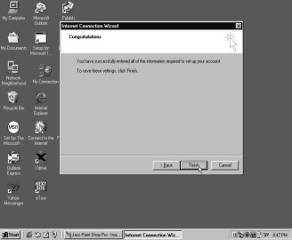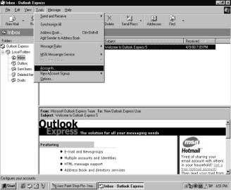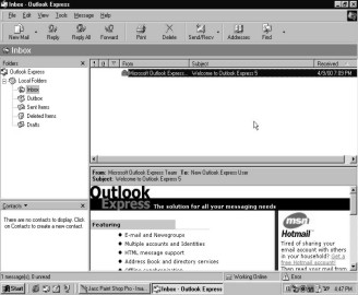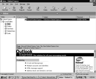You have succeeded in supplying all the information required to set up the account. Click on the `Finish` button to save all the data you have inputted. Go to the inbox to see if you have received any mail. The first mail you receive is from the Microsoft Outlook Express welcoming you to their email services. Each mail you receive or send will have the label `To` and `From` attached to it. This way you know who is mailing you. The inbox also displays the date and time of the mail that was sent to you.