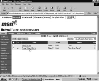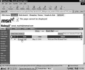 You will be then taken to your Internet letter box, which has one new mail. It is the Hotmail staff welcoming you to their email services. When the arrow changes to a hand, click on their name to read the message.