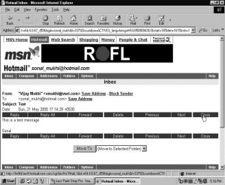And lo and behold! The message has reached you just as you had typed it. No torn edges or bent corners like in the letters you get at home. Click on the `Close` button to be taken back to your inbox.
