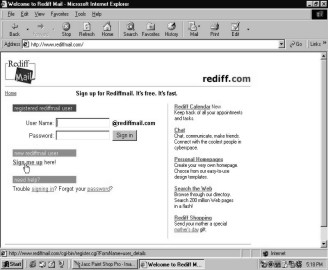 How about going swadeshi? Let us make an account with one of the Indian sites. Type in www.rediff.com in the address bar.