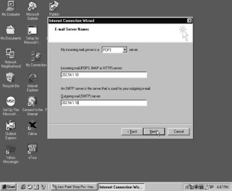 The next dialog box gets a bit technical. You need to input the name of your incoming server. An incoming server is similar to a letter box. It is a machine that stores all your mails. POP stands for Post Office Protocol. Simple Mail Transfer Protocol is the full form of SMTP. It is the outgoing server which functions like a post box that accumulates all the messages that you want to send. You also need to feed in outgoing mail server numbers. This name/numbers are given to you by your ISPs.