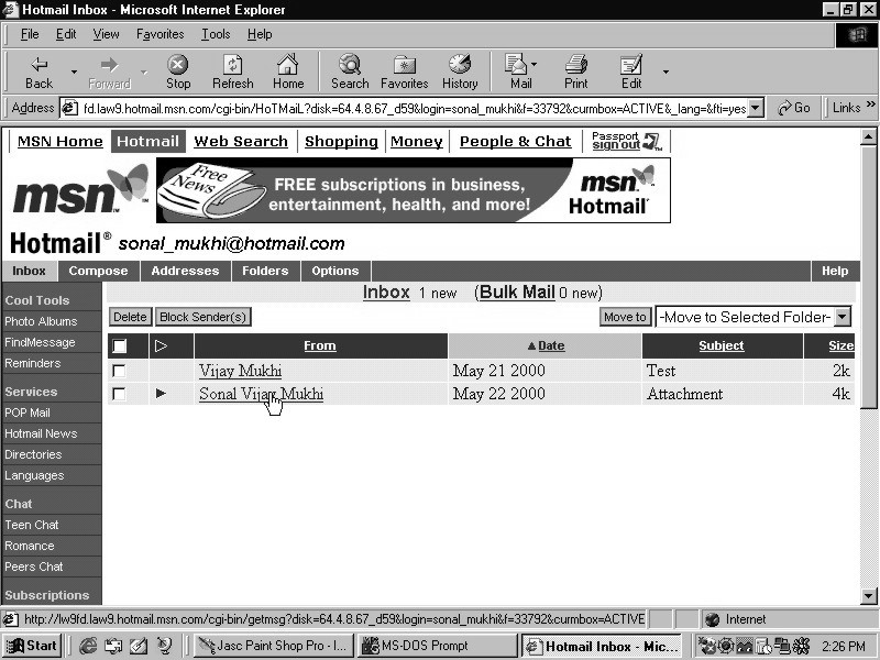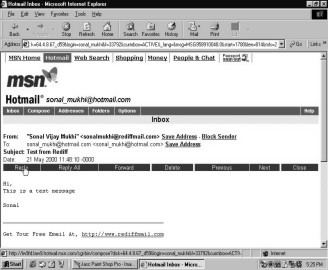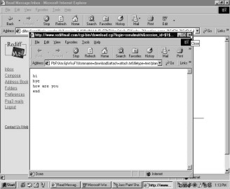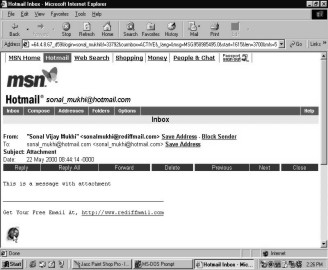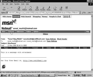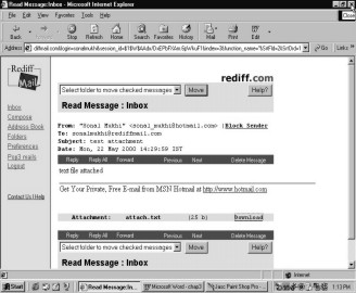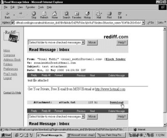 Visit Rediff to open the attached message that Hotmail has sent you. Click on the sender’s name and the message appears on your screen. To see the attached message, click on the `Download` option.