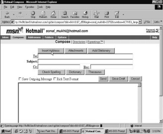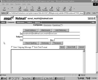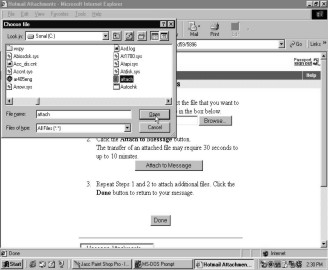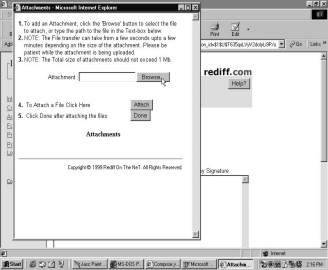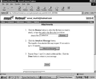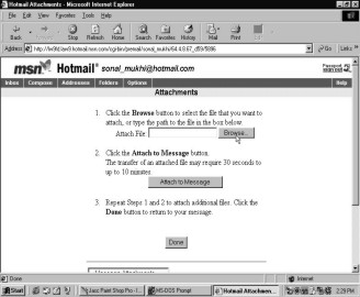 Similar to the procedure you followed at Rediff, click on the `Browse` button to allow Hotmail to locate the file to be attached.