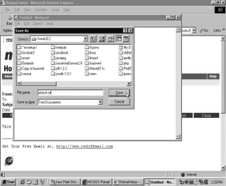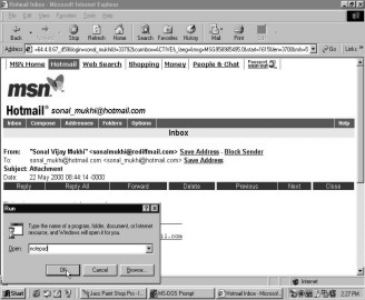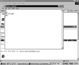 Let us save it in the `C` drive as attach.txt file. You may name the file what you wish. You may even call in a panditji to determine the debut alphabet of the file name. This way you can be sure that even the gods up above are pleased by the name that you have conferred on the file! Click on the `Save` button to save this file on your hard disk. To exit from the notepad, click on the `x` at the top right hand corner.