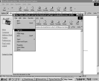 And there it is, the 'hi and bye' greetings you had sent yourself. To save this message, choose the `Save As` option from the File menu. By saving the message on your hard disk you can read it at ease whenever you please without having to connect to the Internet. So if mommy dearest is ticking you off at the moment for coming home an hour later than your deadline or the persistent phone won’t stop ringing unless you go answer it, then simply save the attachment for future read.