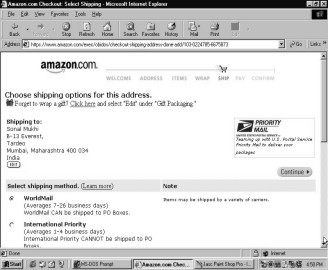 You then need to select the method of shipping by which the product will be sent to you. If you are not in any great hurry to receive the product, select the `WorldMail` option by which the product will reach you in 7-26 working days. Else you can opt for the `International Priority` method by which the product will be on your doorstep in 1-4 business days. You can also ask for a gift packaging of the DVD. For that you need to select the `Edit` option.