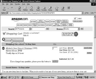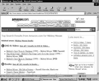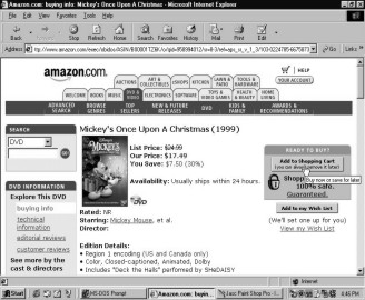 All the products on sale which concern the adorable Disneyland mouse will be displayed - books, cassettes, t-shirts, mugs, videos etc. Click on the product you wish to buy. Let us buy a Mickey Mouse DVD. Nothing better than a nice Christmas tale to watch while munching popcorn and sipping soda!
