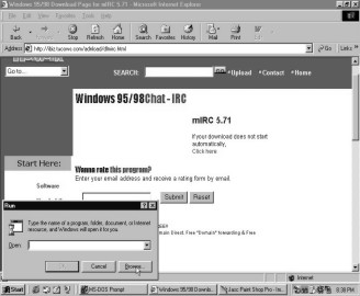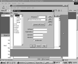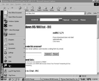 Type in 'irc' in the `Search the Software Library` bar. IRC stands for Internet Relay Chat. From the dropdown box, select `Windows95/98`. This will give you only those matches which correspond with Windows95/98. This way you can be rest assured that the IRC you download is compatible with your computer software. To find IRC matches, click on the `Go` button near the dropdown box.