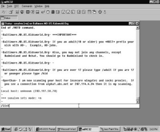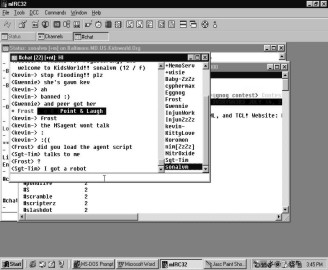 If Cinderella’s midnight deadline doesn’t interest you and neither does the toothpaste Bugs Bunny uses to floss his teeth, then sign out of this room by typing in /quit in the bottom blank bar. From the File menu, choose the `Exit` option to completely log out from the MIRC chat machine.