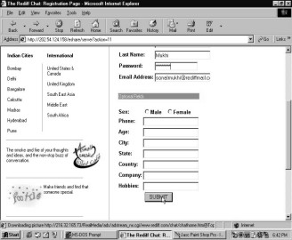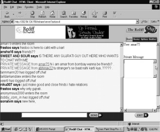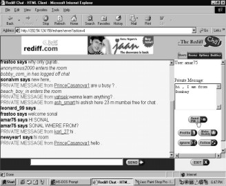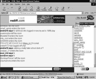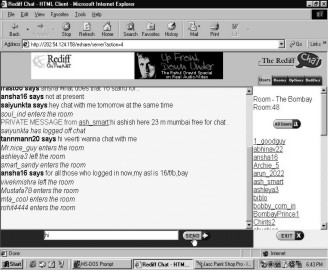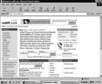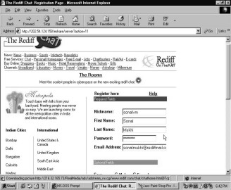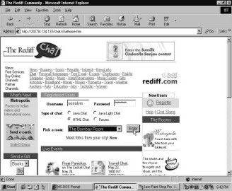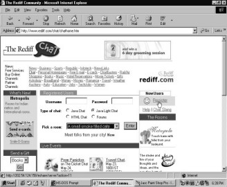 Let us now log on to an Indian chat engine. To check out the Rediff chat rooms, enter www. rediff.com in the address bar. On the website click on the `Chat` channel.