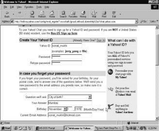 To rescue you when you forget your password, you will be asked a simple question on the reply of which, a new password will be sent to you. Enter the other details regarding your gender, date of birth, occupation etc. You can skip supplying the optional information and send the form over for submission.