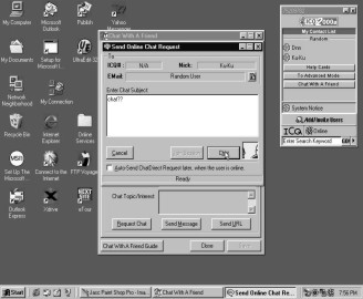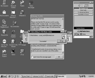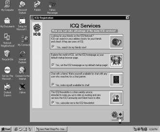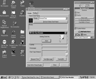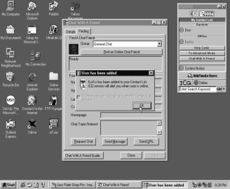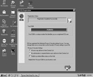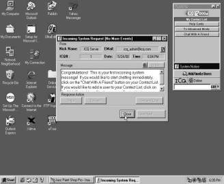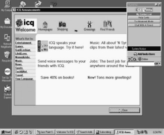 The unique feature of ICQ is the sound effects that it provides, an innovative way to bring you closer to reality. Each time somebody from your list is online, you hear a knock. The first time I heard it, I actually went and answered the door thinking it was my mom returning home from work!