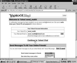 Once your Yahoo! chat ID has been approved, you can proceed to chat by clicking on the `Continue to Yahoo! Chat` switch.