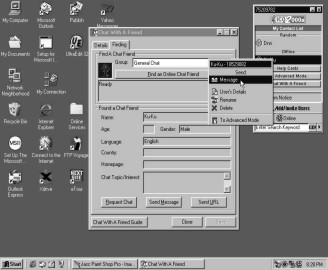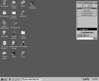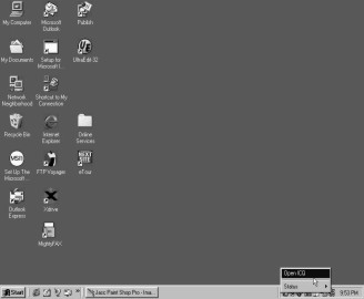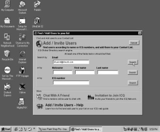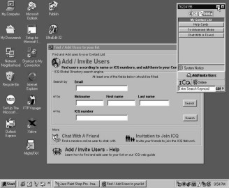 To open your ICQ, right click on the daisy and select that option. Your ICQ window will appear on the top right hand corner of the screen. To add more ICQ users to your list, click on the `Add/Invite Users` button.
