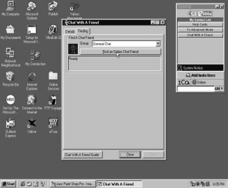 An information based dialog box will appear that allows you to obtain some more information about the program. Shut the box by clicking on the `x` at the top right corner. What we need is the chat, not all this idle knowledge about the software. Whoever reads all these promo pages must really be a grey haired bored man, for who novelty means the third edition of the same newspaper!