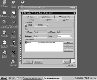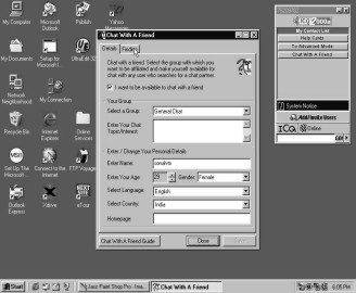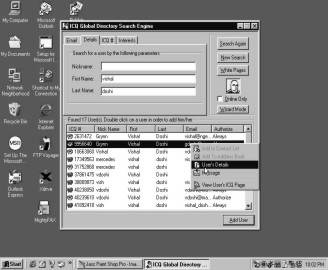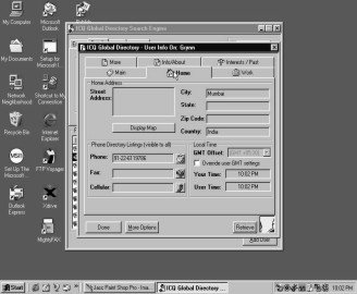 To make sure he is the Vishal Doshi who you met at the Christmas party last year, check out what he has entered about himself. Click on `User’s Details` and a page appears with his name, nick and email identity. To know more about him, click on `Home` to view his telephone number, address, birthday, age and gender.
