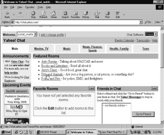The Yahoo! chat page emerges. Click on the `Sign up for Yahoo! Chat!` option.