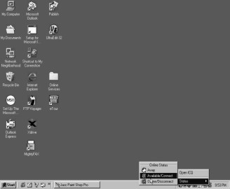 The ICQ symbol, the eight petal daisy, blooms on your task bar near the time display. Click on the flower to select your status. To be available, click on `Available/Connect`. Incase you are busy or don’t want to be disturbed while online, select the `Away` option. This allows others to know you are online, but on an occupied mode.