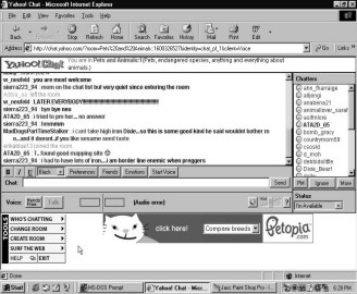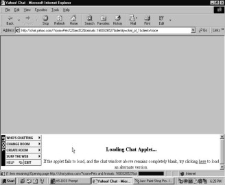 Once you have logged on to a chat room you have to wait for the chat program to be loaded. Since it is a Java program it is fondly called 'chat applet'. While the applet unfurls you can go pet Caramel who is lazily stretched out on your grandma’s favourite rocking chair.