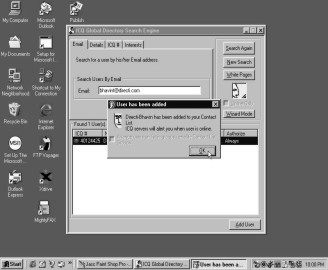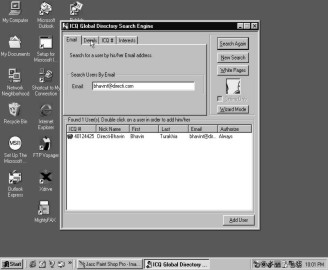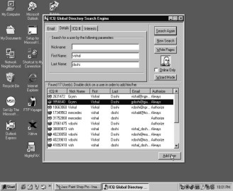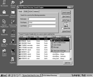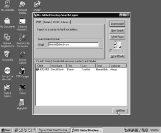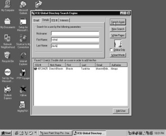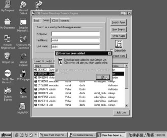 Well, if the person you are looking for has a name that all mothers want to call their baby, then you are in for trouble. A long list of the registered 'Vishal Doshi’s' unfurls before you. Scroll the list to identify your friend by either guessing his nick name , email address or ICQ number. Click on his name and hit the `Add User` button. ICQ promises to alert you once Vishal is online.
