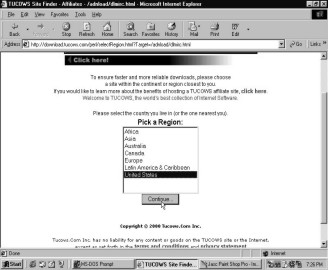 You need to select a country or region that would ensure quicker downloads. And of course like any true blooded indian, let us select `United States`. Click on the `Continue` button to proceed with the downloading process.