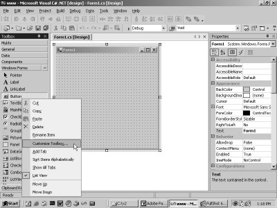the controls in the toolbox, and then, click the right mouse button. The menu