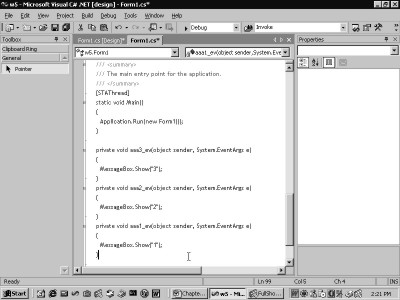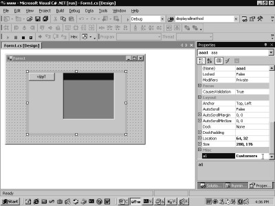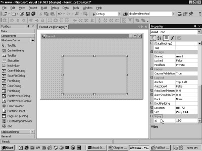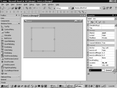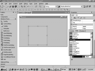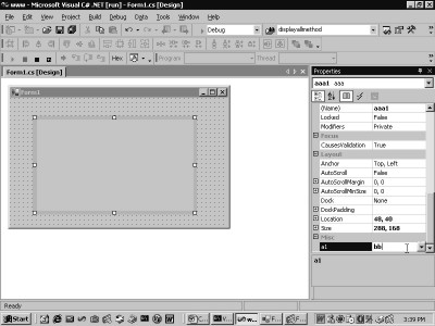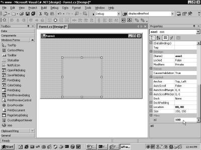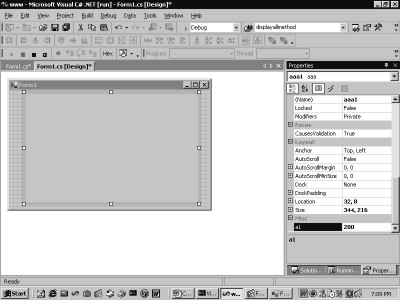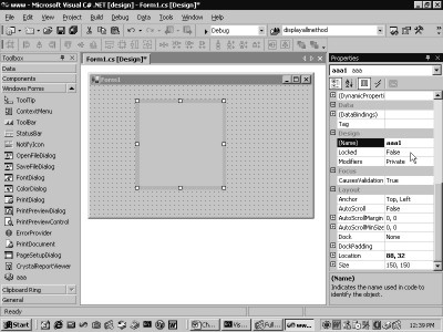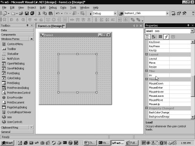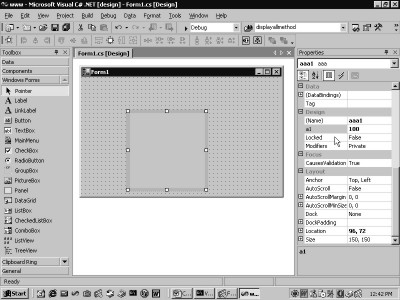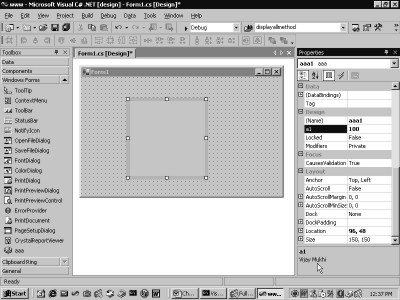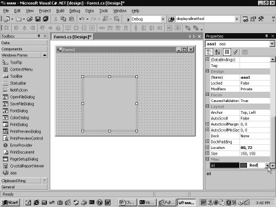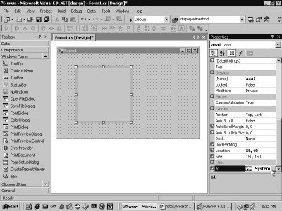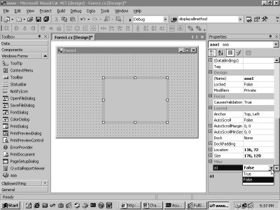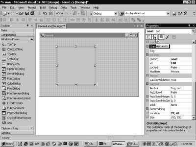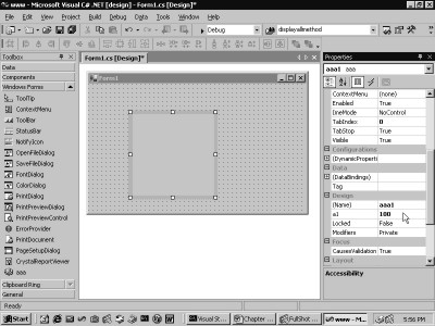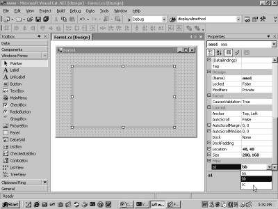 the screen. However, on scrolling down the toolbox, a control called aaa, which