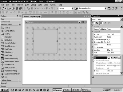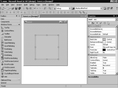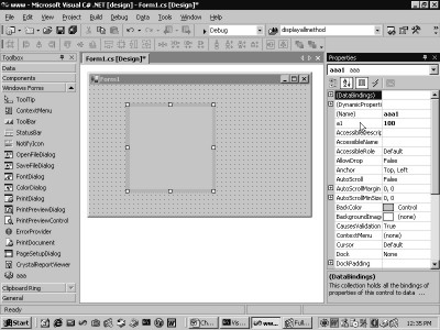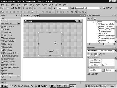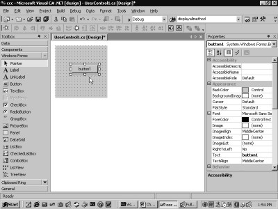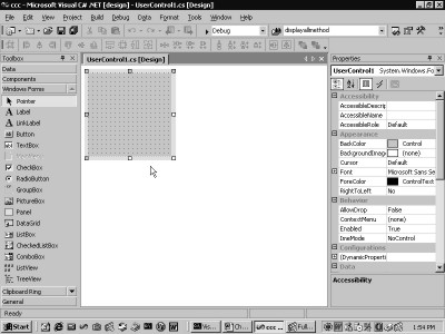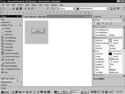control can be displayed in the toolbox of Visual Studio.Net, together with its