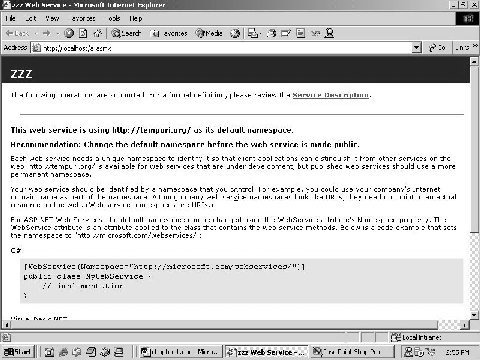 IIS is cognizant of the fact that an asmx file encloses code that others may call remotely. Therefore, on stumbling upon a file with the extension of asmx, it displays the following large html page: