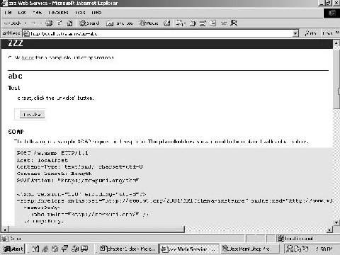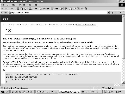 A vital point to be borne in mind is that, irrespective of where the code resides, the WebService class is called zzz. Although there is no mention of class names in the SOAP payload, we are confined to using just a single class name in our program. The asmx file may use a different name, but it must have only one WebService directive.