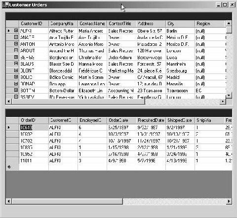 Once a DataRelation object has been created, it then becomes the bounden duty of the system to maintain this relation or Constraint. This constraint will ensure that no record is added in the Order table, unless it contains a CustomerID that is present in the Customers table. The DataRelation retrieves records in a similar manner. If we bypass the xsd file, we would have to enter the above code manually, which is obviously a very tedious task.