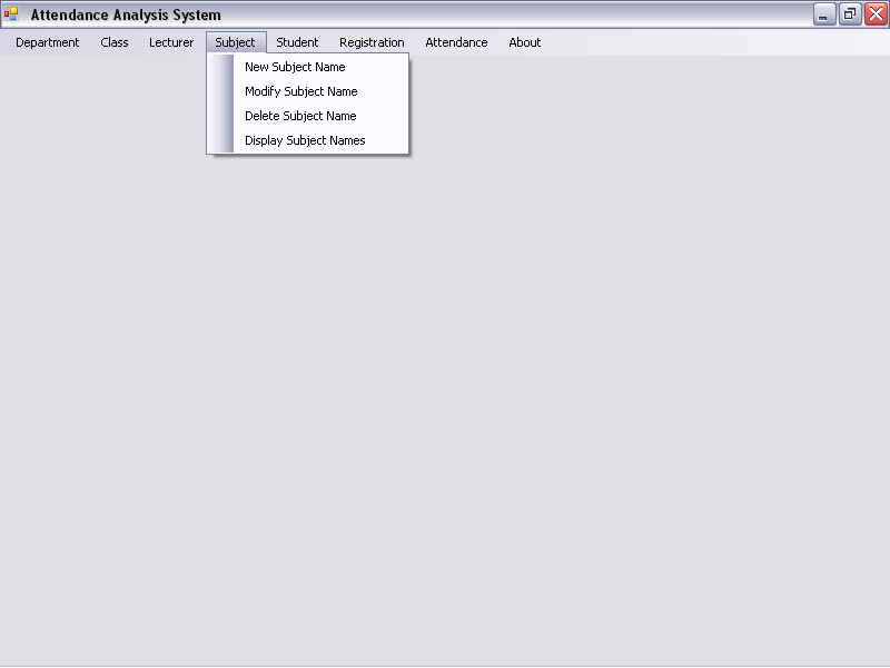 After creating Departments, Classes and Lecturers, you can now add Subjects to this application using the “Subject” menu, as shown in Figure 4.1